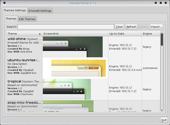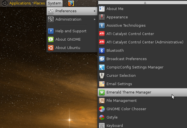 安装完毕后 ,在”系统–>首选项”里面找到 “Emerald Theme Manger”: