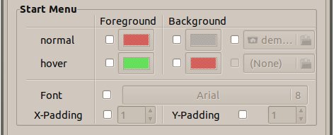 现在切换到 panel标签,在这里你可以你的panel的每一样东西. 你可以改变字体,字体颜色,背景和背景颜色 还有开始菜单. 勾选 normal 选项,选择 你想要的panel字体颜色.如果你想要改变悬停颜色,也可以使用它。