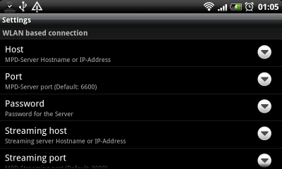 —-在”Default connection settings“中,”Host” 和 “Streaming Host”输入你的电脑IP地址(如果没有改变MPD设置,默认端口即可),然后输入密码即可。