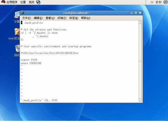 NOTE:一般在root下直接是看不见.bash_profile(一般为隐藏文件)的,可以在该目录下使用ls –a 命令来显示隐藏了的文件。然后用VI或emacs编辑器来修改其中的内容。编译完成后若要立刻看到效果,可以用命令:source .bash_profile ,若要长期起作用,需要重新登录(当我首次安装的时候是出现的情况是这样的~~~