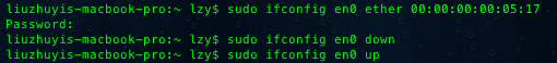 1、苹果下修改MAC并重启网卡