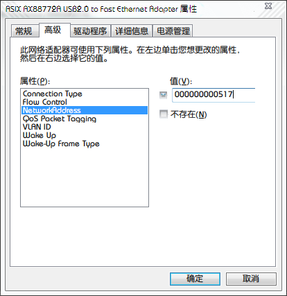 最近买了一USB有线网卡(AX88772芯片)为了Snow Leopard,每次开机时,其MAC地址均会变成全0(不知道是不是我i这网卡独有的问题),这样即使分到IP地址也不能通信。所以每次断电后回复均要先修改MAC。