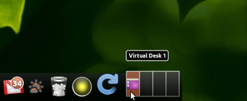 2、Docky 工作区切换 Docklet 如果你把 Docky 放在桌面底部的面板,那么确定你添加了工作区切换 Docklet(Docky>设置>Docklet>工作区切换)。就像标准的 Gnome 切换程序那样,点击你想要切换到的相关工作区,就可以完成切换了。