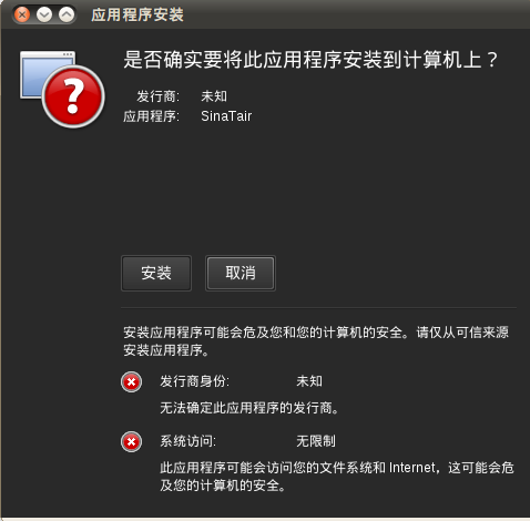 说远了,还是说说怎么样安装SinaTair的吧,SinaTair是什么?自己google去,新浪微博上最受欢迎的客户端