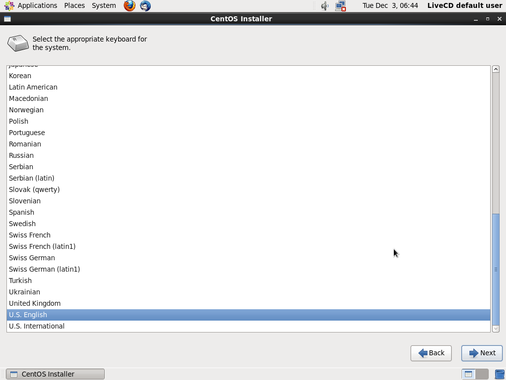 4.键盘布局 - 这一步会询问你,选择你的键盘布局。(译注:推荐选择U.S. English)