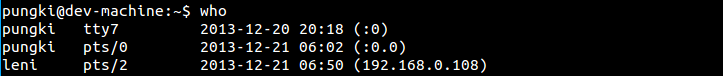 Linux命令之who - 查看当前登录用户 http://www.linuxidc.com/Linux/2011-04/34764.htm