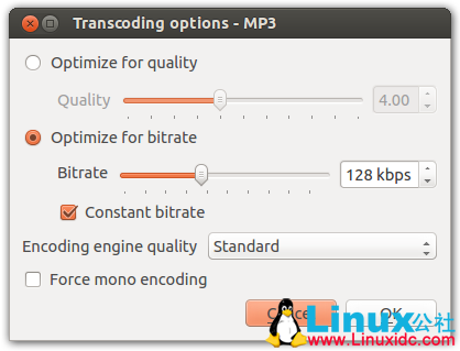 例如,用户可以转码FLAC 音轨为 MP3,方式:
