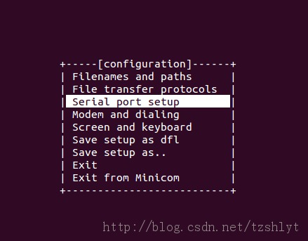 设置保存为dfl: 将配置保存为默认配置,下次运行 ”sodu minicom“命令时,自动启用该配置