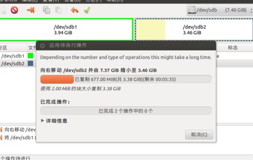 ok,后面的分区成功缩小,第一分区扩容就很快了。