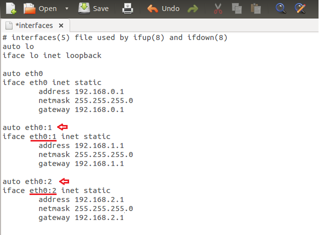 sudo gedit /etc/network/interfaces