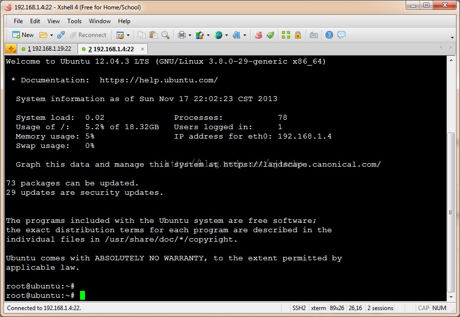 root账户启用后,用ssh远程登录上去配置,这样方便些。毕竟在服务器上操作不是很方便(我们单位有20多台服务器,接在了一个该死的KVM切换器上,由于VGA线路过长(20M),显示器跳的厉害。