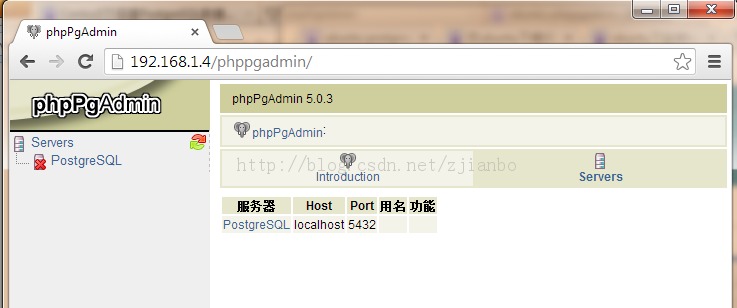 打开浏览器输入phppgadmin的网址就可以看到了