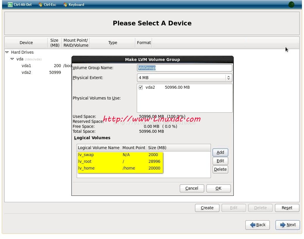 逻辑卷可以使扩展分区非常方便,下面说明下如何在安装CentOS系统时创建逻辑卷