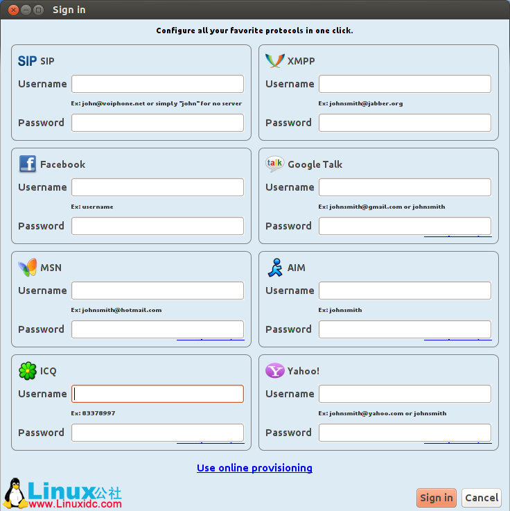 SIP XMPP (Jabber) GoogleTalk (使用XMPP) Facebook (使用XMPP) .NET Messenger Service (通常叫做MSN或者是Windows Live Messenger),Yahoo! Messenger,AIM ICQ通话