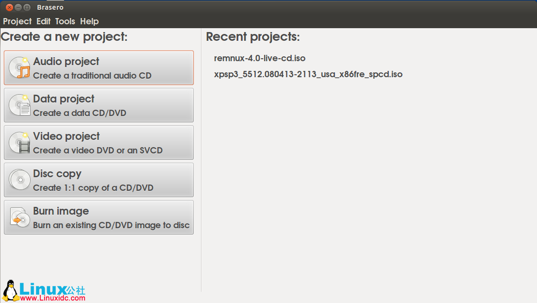 初试Ubuntu光盘刻录工具Brasero http://www.linuxidc.com/Linux/2012-10/72328.htm