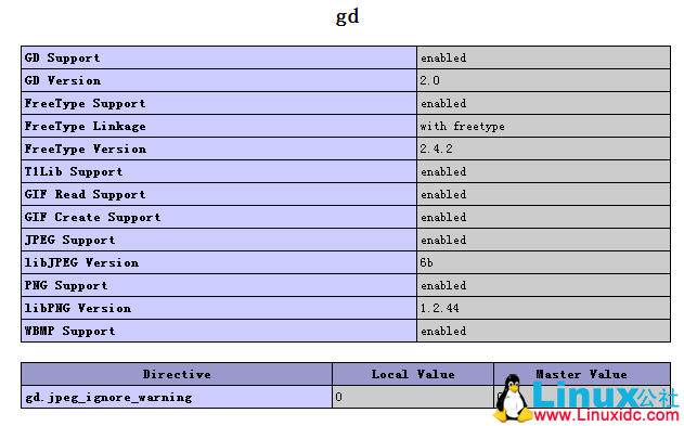通过浏览器,访问此php文件,如:http://server_ip/phpinfo.php,若显示有如下内容表示GD库已经安装,若无则需先安装GD库。