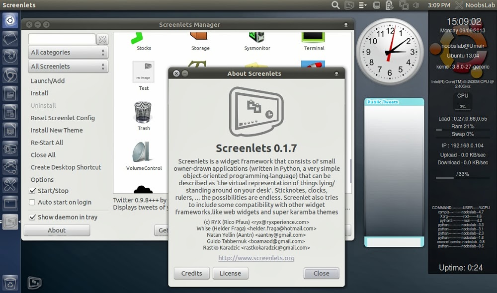 Ubuntu 13.04下安装漂亮桌面工具条的 Screenlets http://www.linuxidc.com/Linux/2013-07/87061.htm