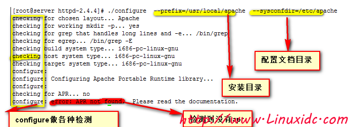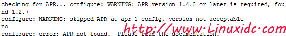然而类似的问题又出现了,提示我们apr-util的配置文件没找到,那么我们再把 --with-apr-util=/uar/local/apr-util/ 加入上边指令中又有些小问题出现,说pcre的库找不到。