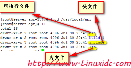 (3)安装完毕后/usr/local/apr目录下会生成下列文件