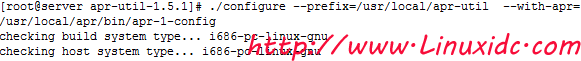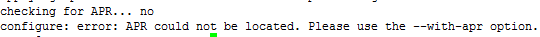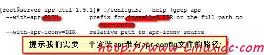 (4)至此apr已经被安装好了,然后依据apr的安装来进行apr-util的安装,在生成makefile文件时又出现下面的错误,提示我们apr并没有找到,让我们加入一个--with-apr的选项