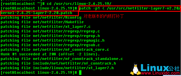 shell> patch -p1 < /usr/src/netfilter-layer7-v2.20/kernel-2.6.25-layer7-2.20.patch