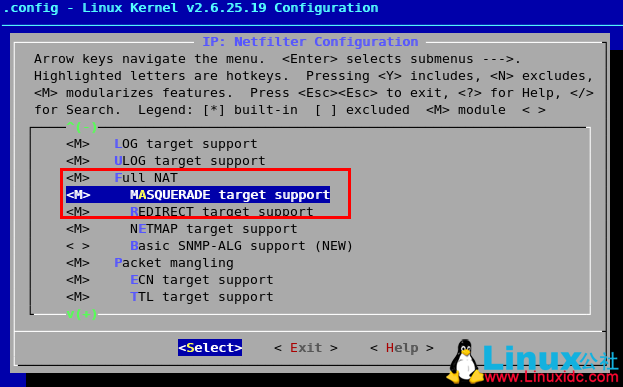 //将“Full NAT”下的“MASQUERADE target support”和“REDIRECT target support”编译成模块。