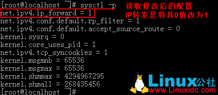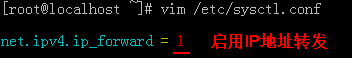永久打开(修改/proc文件系统中的ip_forward,当值为1时表示开启,为0表示关闭):
