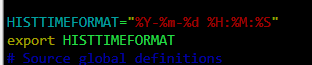 添加完成后,执行source .bashrc 让其生效。这个时候,你再执行history就会发现已经显示了时间。如下: