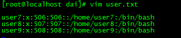 1,新建一个文件user.txt,以/etc/passwd 为模板
