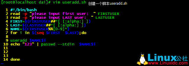 执行一下脚本文件bash useradd.sh根据提示输入两个用户,不过第二次输入的用户名的最后的数字要比第一次输入的大,这样连同中间数的所有用户创建成功。