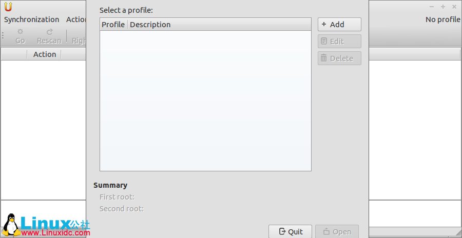 现在在你的本地系统上,从Menu(菜单)或Dash启动Unison GUI工具。它的界面看起来应该如下。