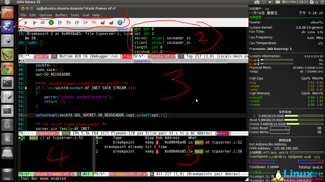 如何在GNU Emacs环境下编译并运行C/C++程序? http://www.linuxidc.com/Linux/2012-08/68299.htm
