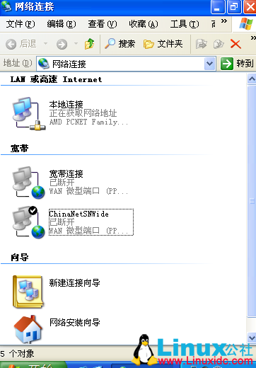 4)打开虚拟机里的网络连接,里面有一个ChinaNetSNWide的连接