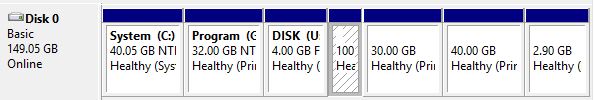 首先,在win7/win8环境下分区,OS默认主分区只有4块,C、D、E盘三块,其它的都应该在扩展分区了,我的机器比较老硬盘也小,所以C盘40G,D盘32G,格式都是NTFS。E盘4G用于存放安装镜像,格式为FAT32,也只能是这个格式。接下来在扩展分区,分辨100M、30G、40G、3G,分别用来挂在/boot、/、/home和swap,注意安装后E盘做好别删,隐藏起来就好了。分区情况如图(1)所示。