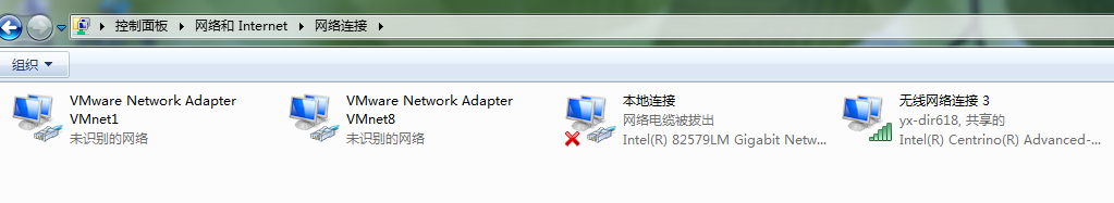 由有需要在本人机子搭建一个Linuxr网络环境,准备三个虚拟机,一个master,一个slave,所以就准备用VM搞三个Linux虚拟机,Linux采用CentOS 6.3系统,利用这三个虚拟机组建一个小型的虚拟局域网,安装完虚拟机之后,在网络连接里面会多出两张网卡(如下图1)