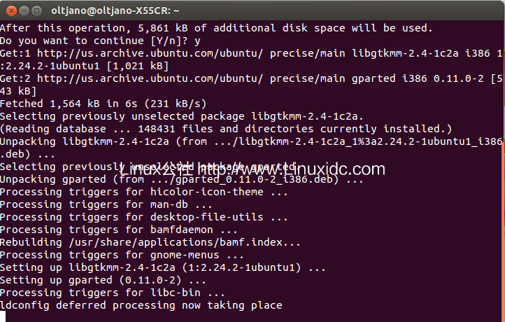 在得到询问您是否继续的时候,键入 “Y” 来让安装继续。