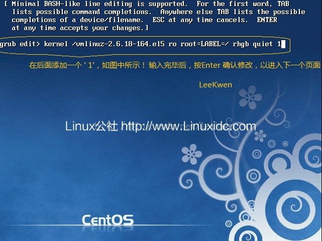 CentOS release 5.4 (Final)重置root密码图文教程: