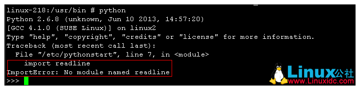 然后再敲python就不会出现"ImportError: No module named readline"的提示了