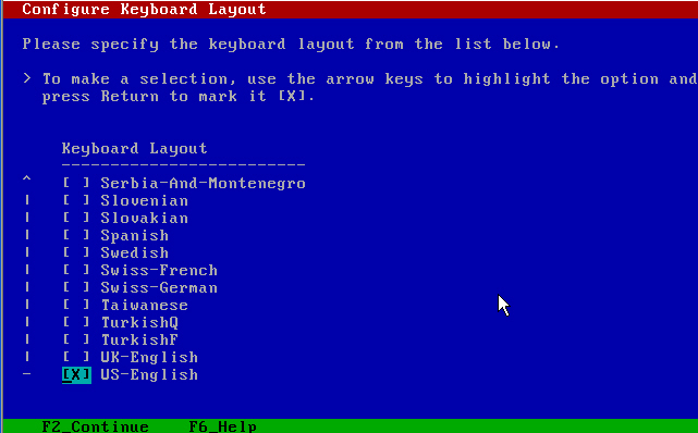 这里选择键盘的布局,默认就是我们使用的美国英文键盘。
