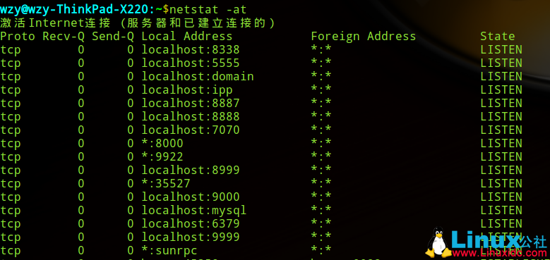 -a (all)显示所有选项,默认不显示LISTEN相关