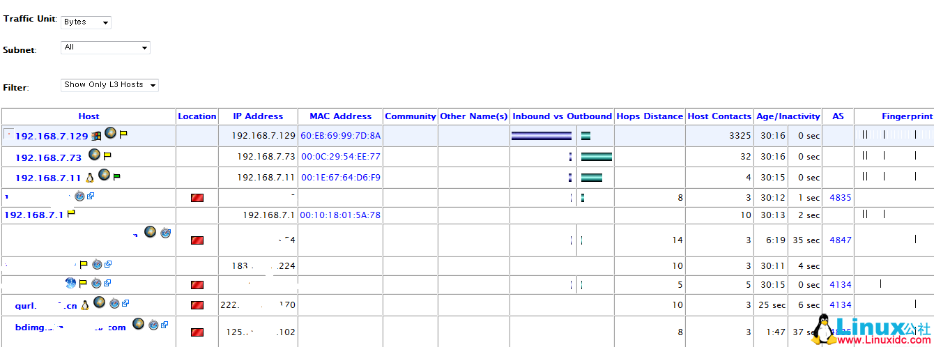 NTOP是一个自带web管理界面的网络流量监控工具,用来监控LINUX站内内网流量。它可以安装在网关上,也可以桥接在网关与接入层交换机间作为一个嗅探器,可以理解为一个加强版sniffer。