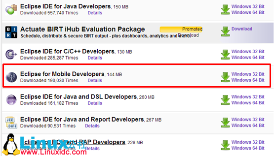 选择手机开发的那一个选项,选择Linux64位。http://www.eclipse.org/downloads/packages/eclipse-mobile-developers/junosr2
