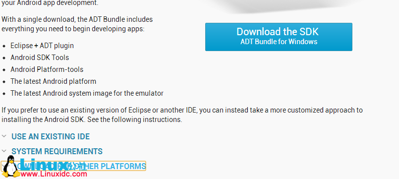 Ubuntu 12.04下搭建Android开发环境图文详解 http://www.linuxidc.com/Linux/2013-06/85302.htm 64位Ubuntu 11.10下Android开发环境的搭建(JDK+Eclipse+ADT+Android SDK详细) http://www.linuxidc.com/Linux/2013-06/85303.htm Ubuntu搭建Eclipse+JDK+SDK的Android http://www.linuxidc.com/Linux/2011-11/46995.htm首先您需要到Android的官网的方法去下载几个东西: