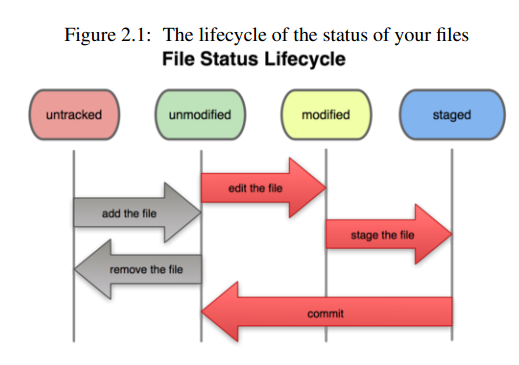 Modified(working directory):被修改过的文件 Staged(staging area):通过git add添加到暂存区域的文件 Committed(git directory):通过git commit提交到仓库的文件