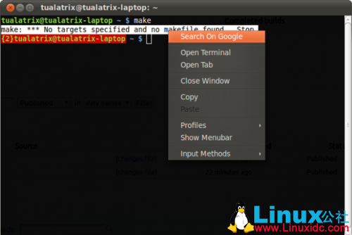 这是一位小黑客在Ubuntu 下为GNOME终端添加Google搜索支持。这样当你在终端运行一些命令,输出的消息可能让你眼花缭乱,你可以选择文本并单击鼠标右键,在菜单中会有“Google搜索”!
