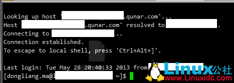 我在Qunar的工作是运维开发,因此需要通过终端连接到远程开发机进行工作,由于安全等因素,登录开发机时需要先登录跳板机,然后在跳板机上再实际连接开发机,如下图所示: