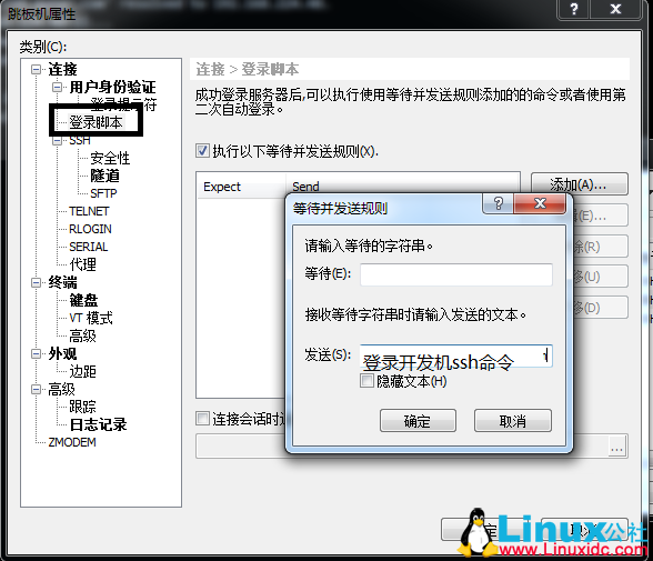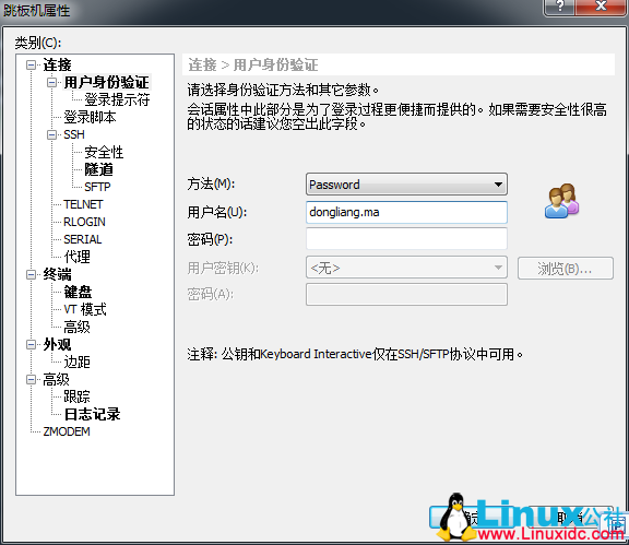 登录跳板机,输入用户名这个过程可以简化,即使用XShell自动完成用户名的输入,如下图所示: