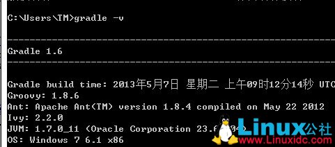 配置好环境变量之后,在cmd中用gradle -v命令验证是否成功