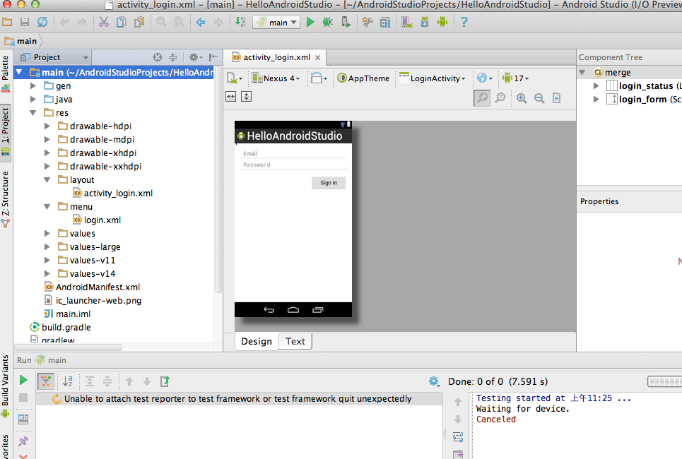 ⑤自带布局编辑器,可以让你拖放UI组件,并在多个屏幕配置上预览布局等。
