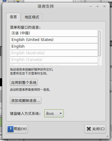 最后要到 系统工具>系统设置>语言支持 里面,把ibus设置为“键盘输入方式系统”。